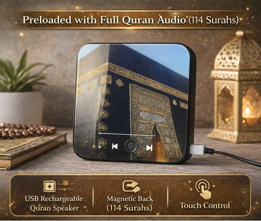 Nuravia™ Rechargeable Quran Speaker with Magnetic Back – Full Quran Audio (114 Surahs),