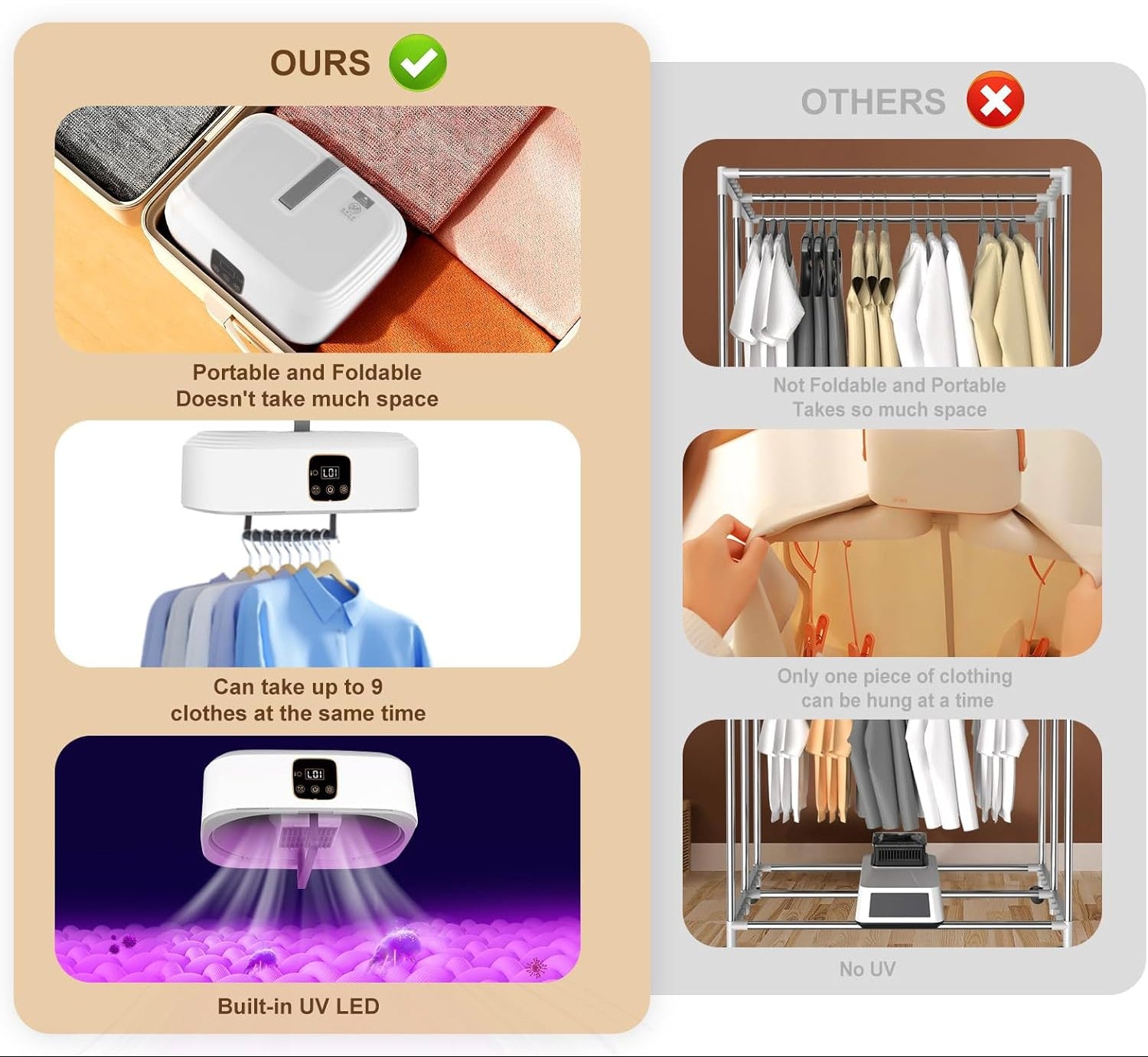 Portable UV dryer that dries fast, saves space, and keeps clothes hygienically clean.